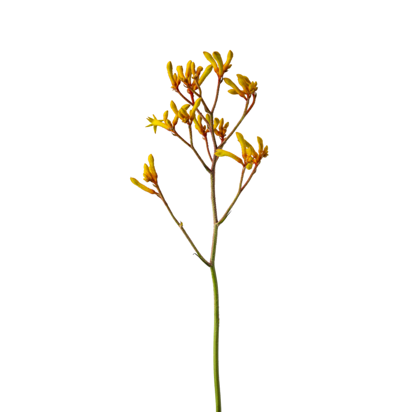 De Anigozanthos is verkrijgbaar in verschillende kleuren, zoals geel, oranje, rood en groen.