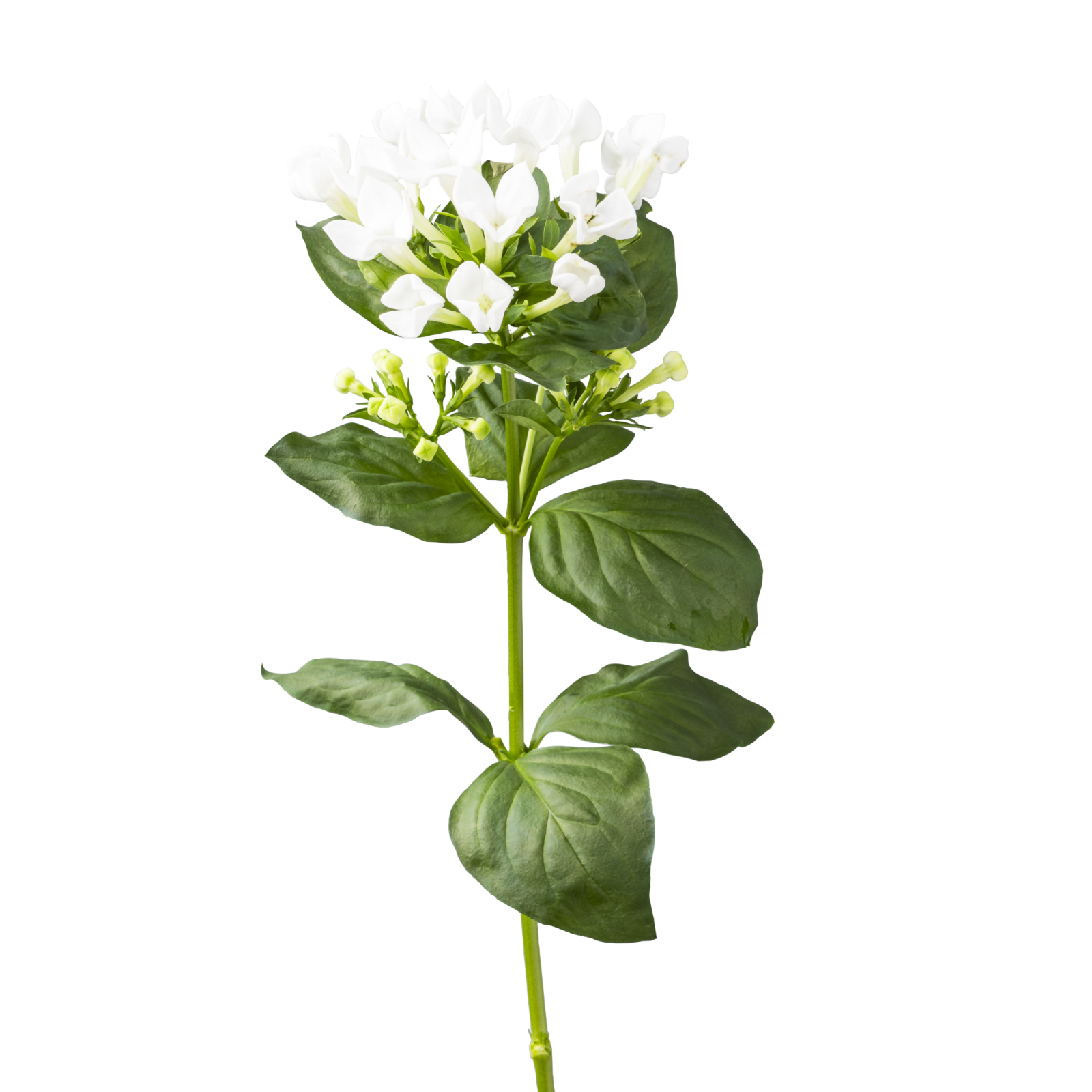 De Bouvardia heeft kleine, stervormige bloemblaadjes die dicht op elkaar zitten, waardoor een weelderige en volle uitstraling ontstaat.