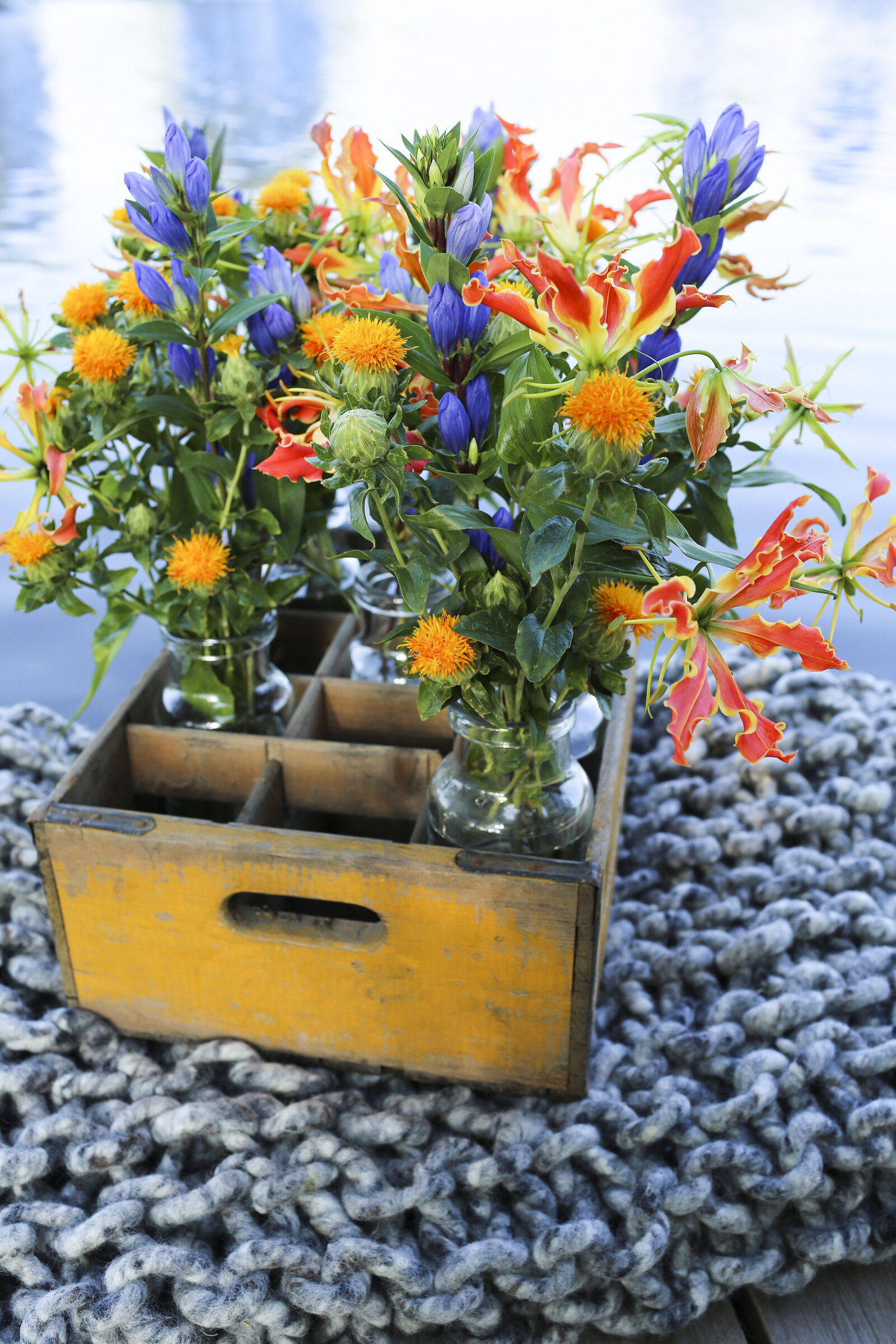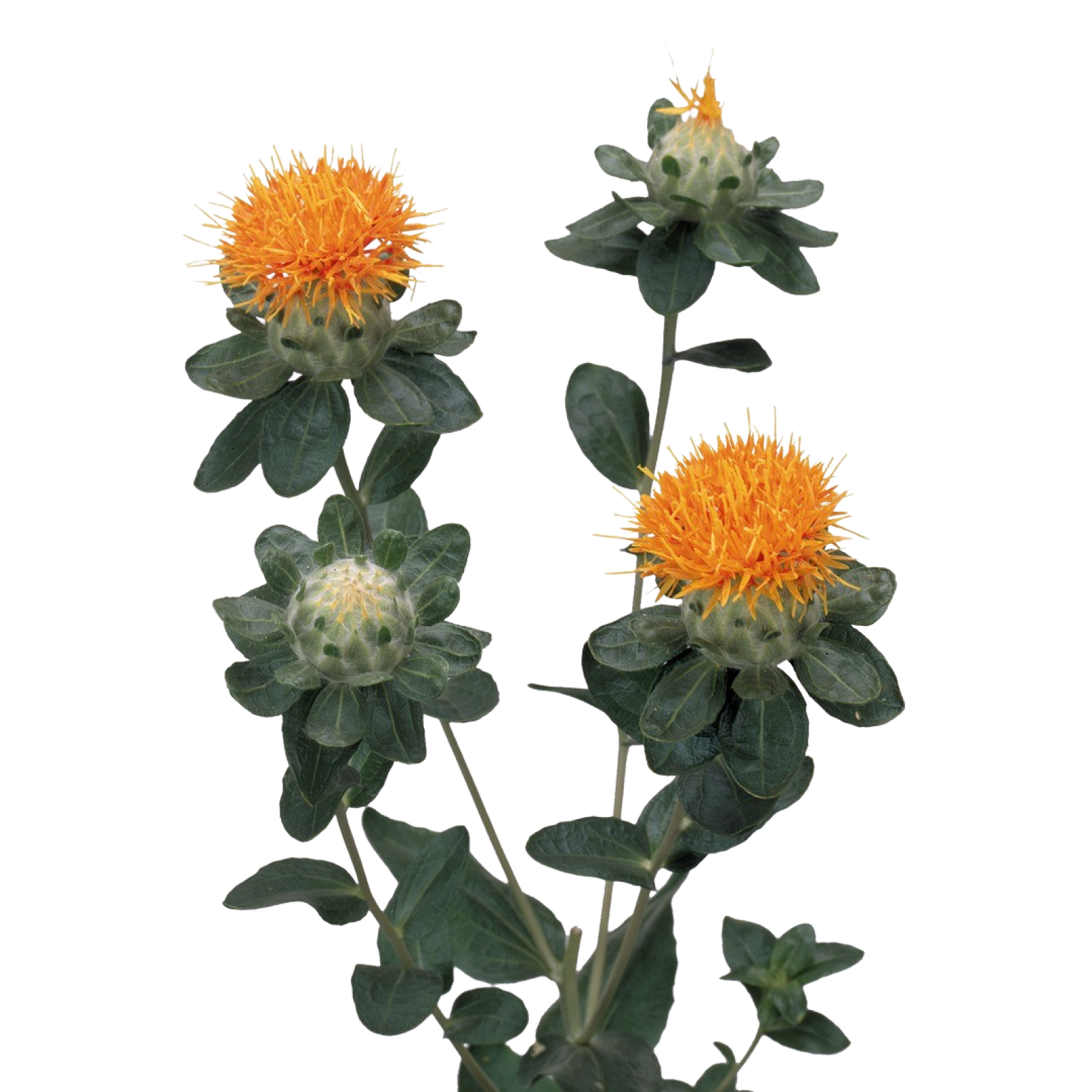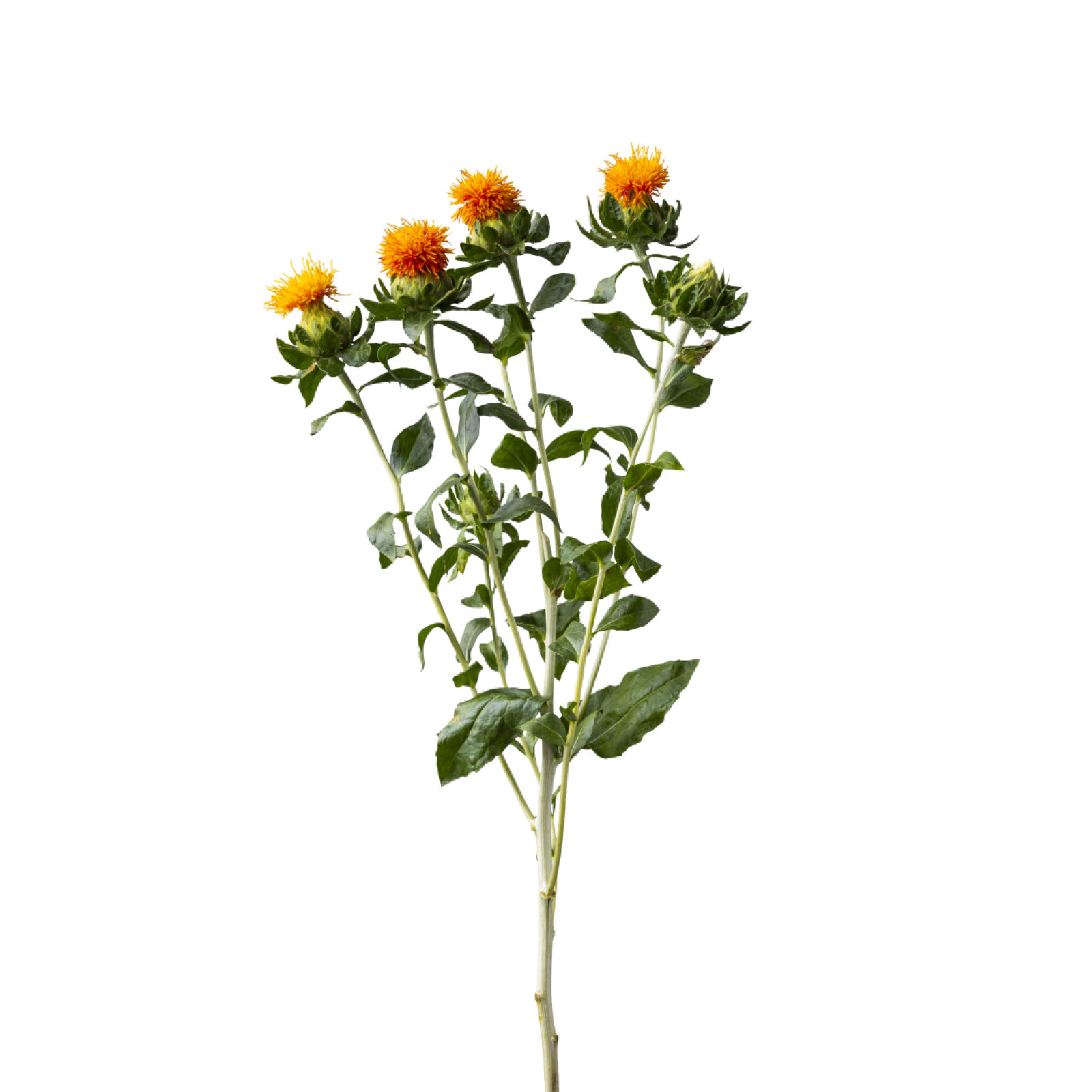 Met zijn opvallende stekelige textuur en levendige bloemhoofdjes is de Carthamus een blikvanger in elk boeket.