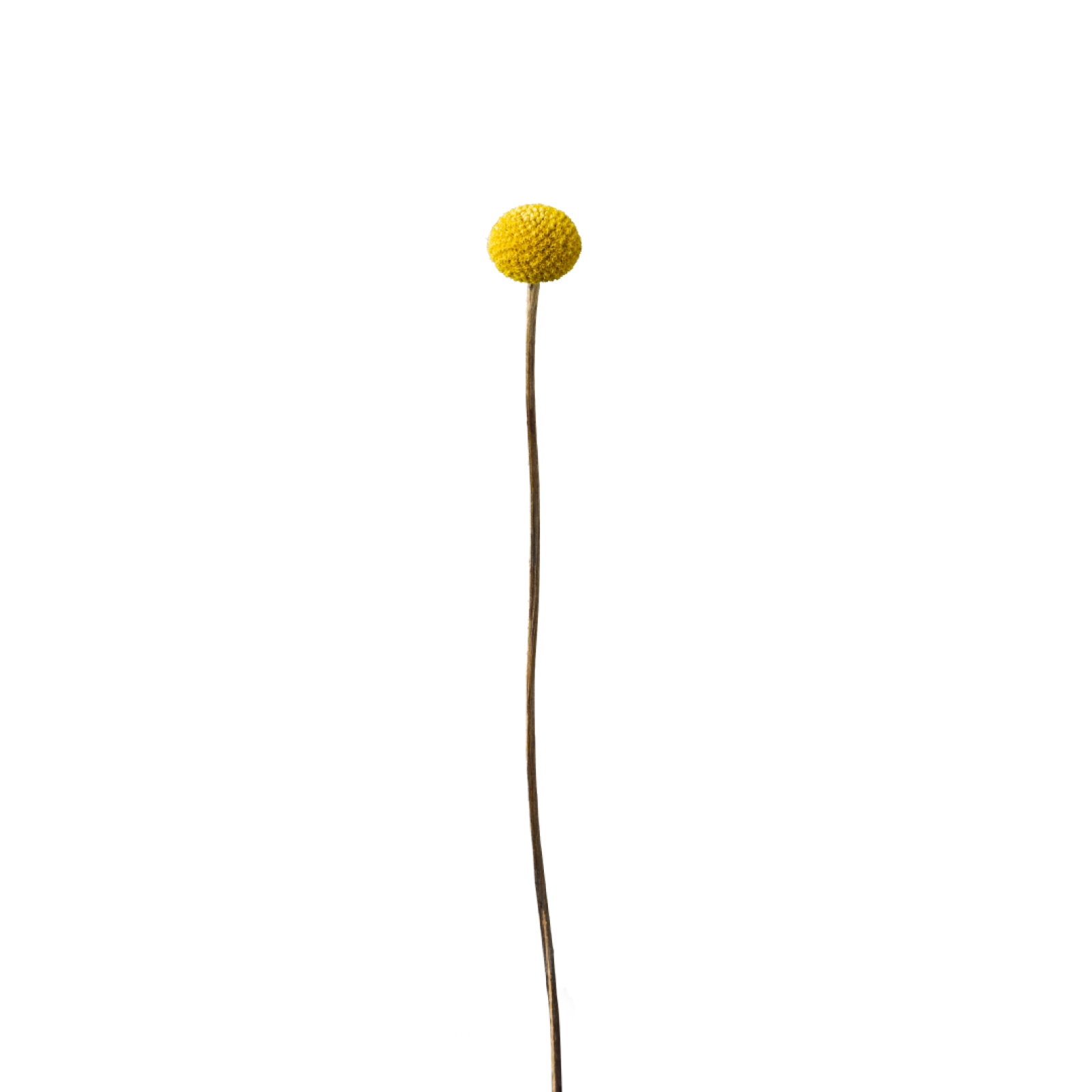 De Craspedia heeft een opvallend uiterlijk! Zijn bolvormige kopje, dat bestaat uit kleine gele bloemetjes, staat bovenop een lange, dunne steel.