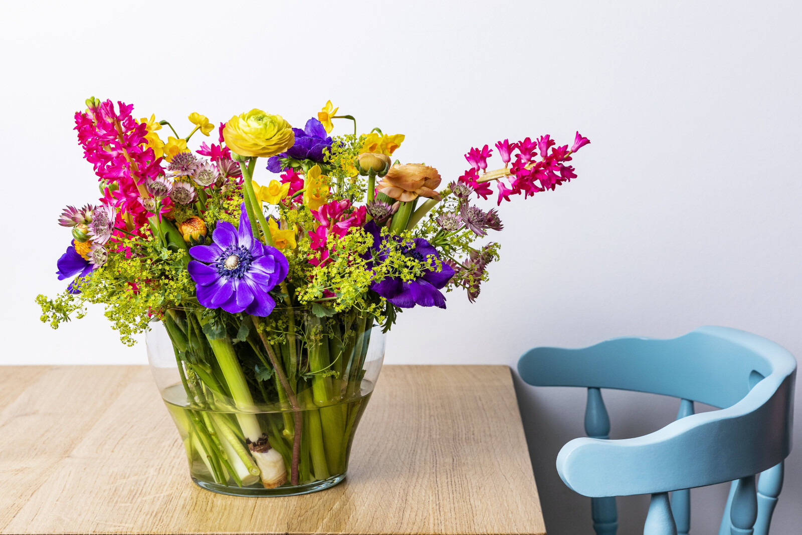 De Hyacinthus is een weelderige bloem, gekenmerkt door dichte, kleurrijke bloemtrossen op een stevige steel. Deze bloem is altijd een blikvanger in een boeket.