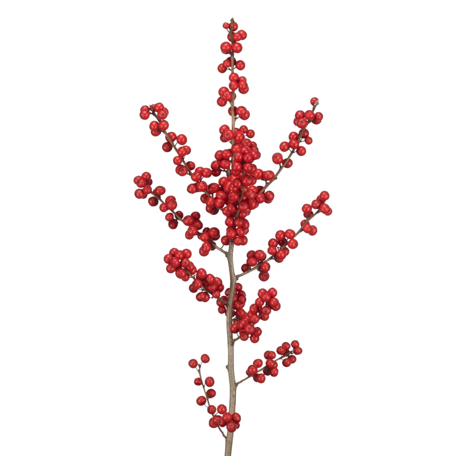 De rode Ilex is een echt kerstproduct. De kale takken met de rode bessen symboliseren de winter. De andere kleuren bessen luiden de herfst in.