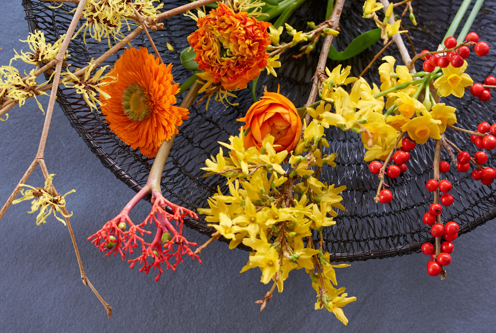 In het najaar komen eerst de Ilex met oranje, geel, zalmroze en creme bessen. Daarna komen de kersttakken met de rode bessen!