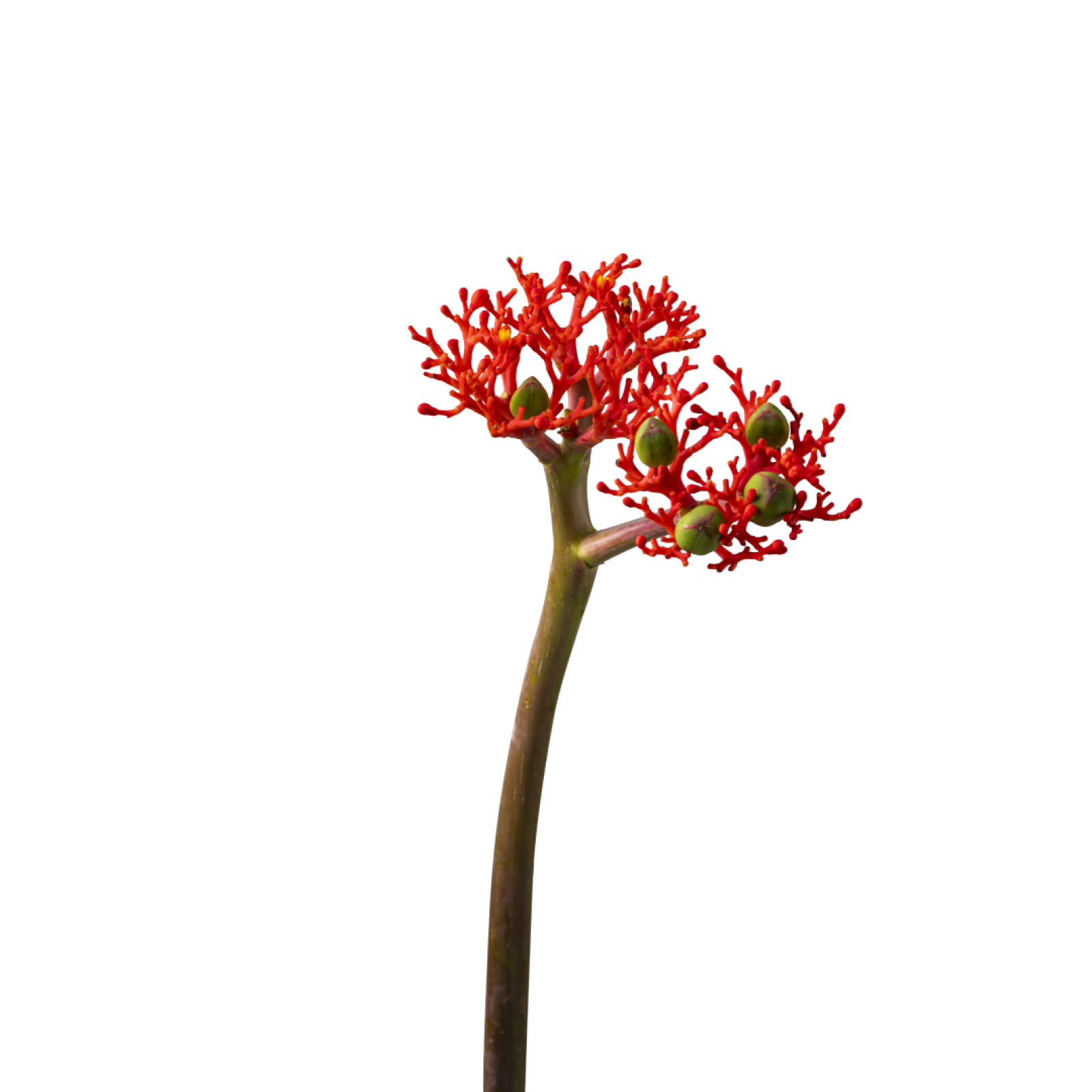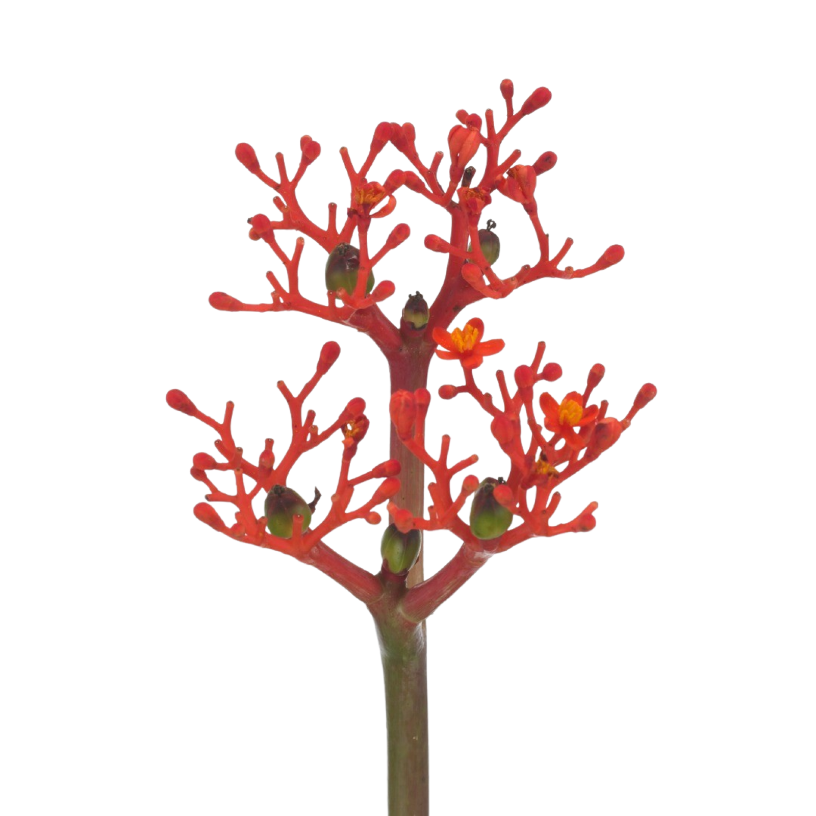 De Jatropha staat symbool voor liefde, passie en vitaliteit vanwege zijn heldere rode kleur.