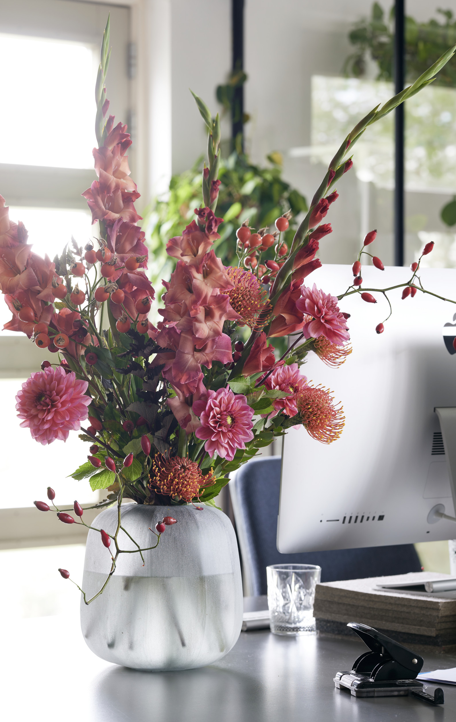 De Leucospermum is een blikvanger in elk boeket of arrangement, door zijn opvallende bloeiwijze en exotische uitstraling.