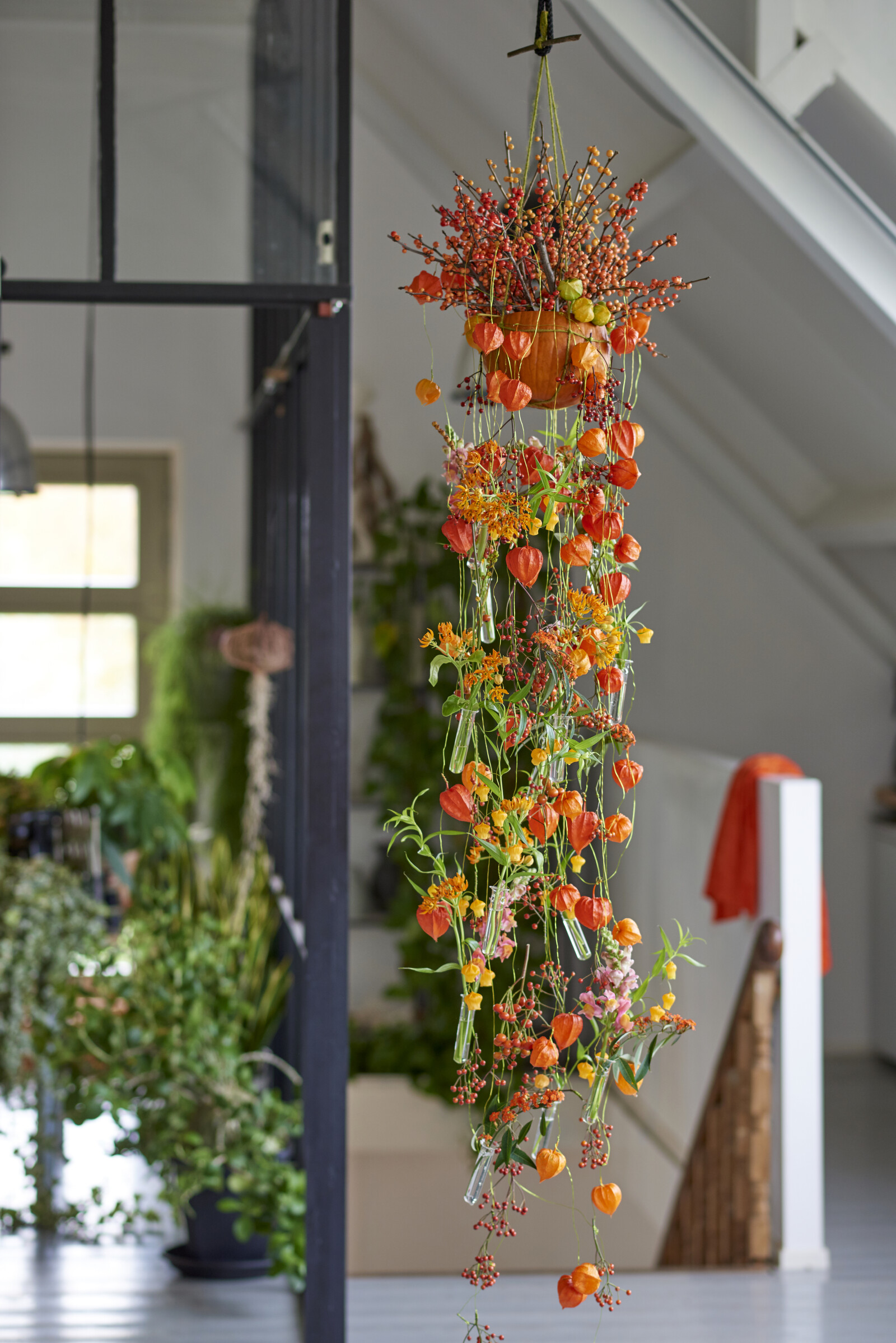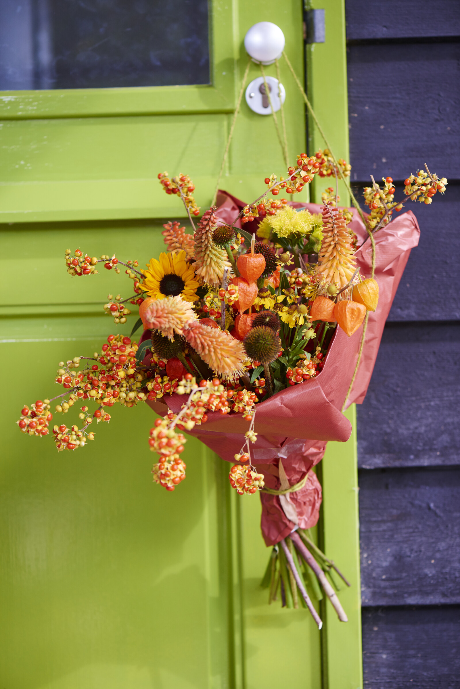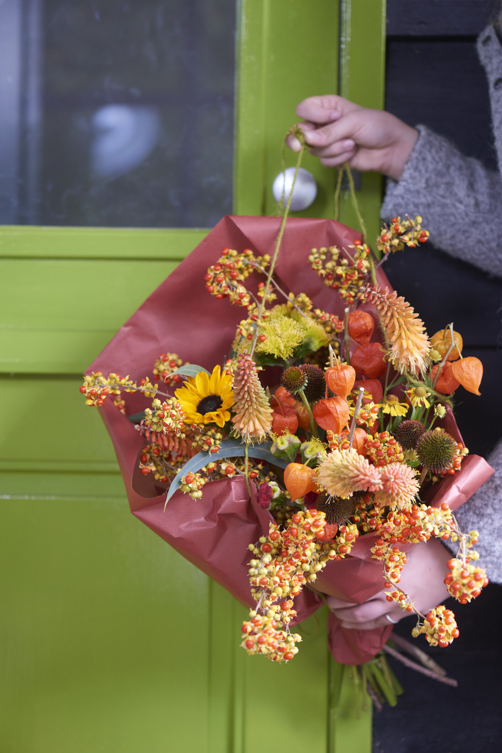Met zijn opvallende, papierachtige oranje lampionnetjes voegt de Physalis een herfstelement toe aan het bloemwerk, zowel vers als gedroogd.