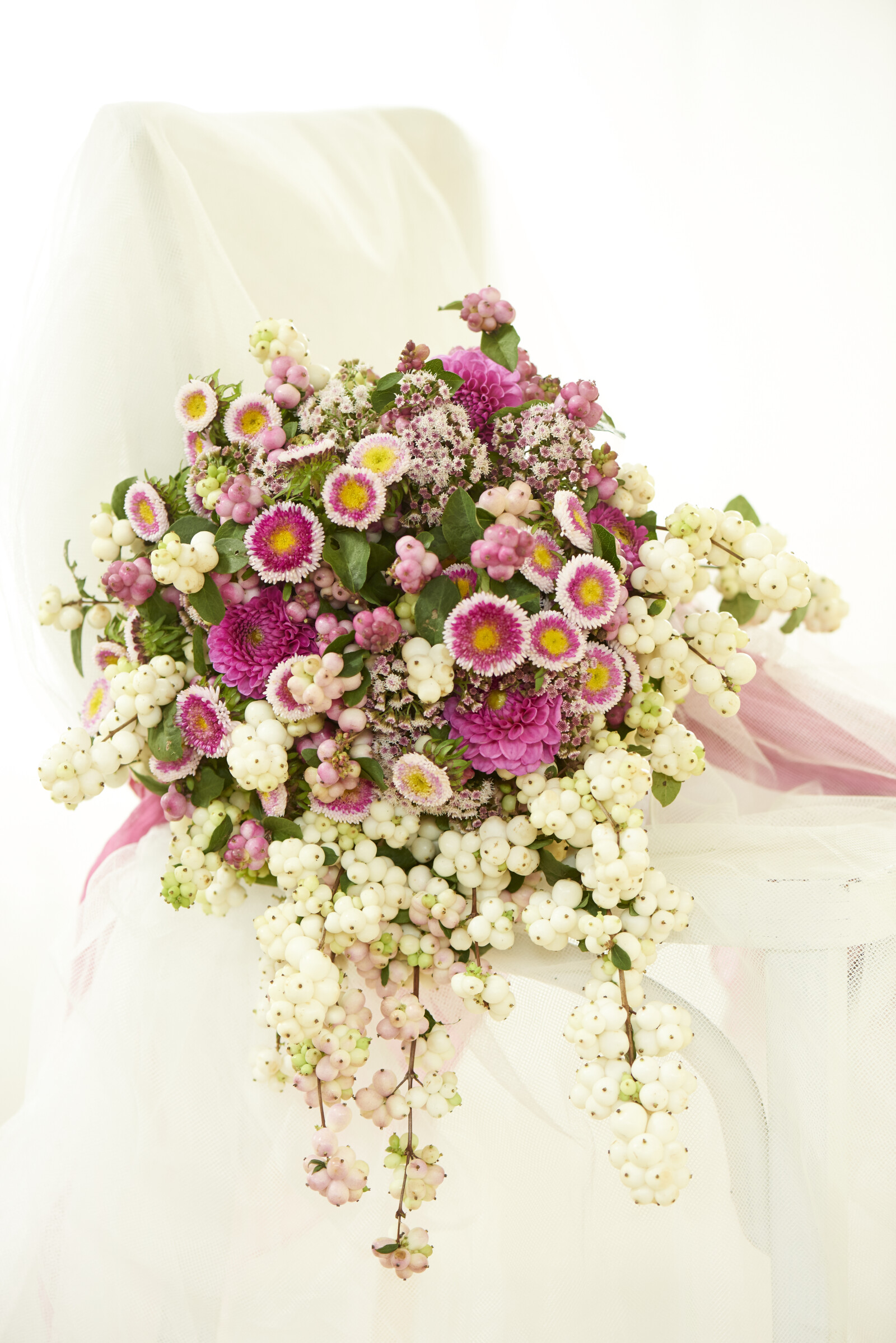 De Symphoricarpos voegt een bijzonder effect toe aan je boeket door de wit of roze bessen en dichte groeiwijze.