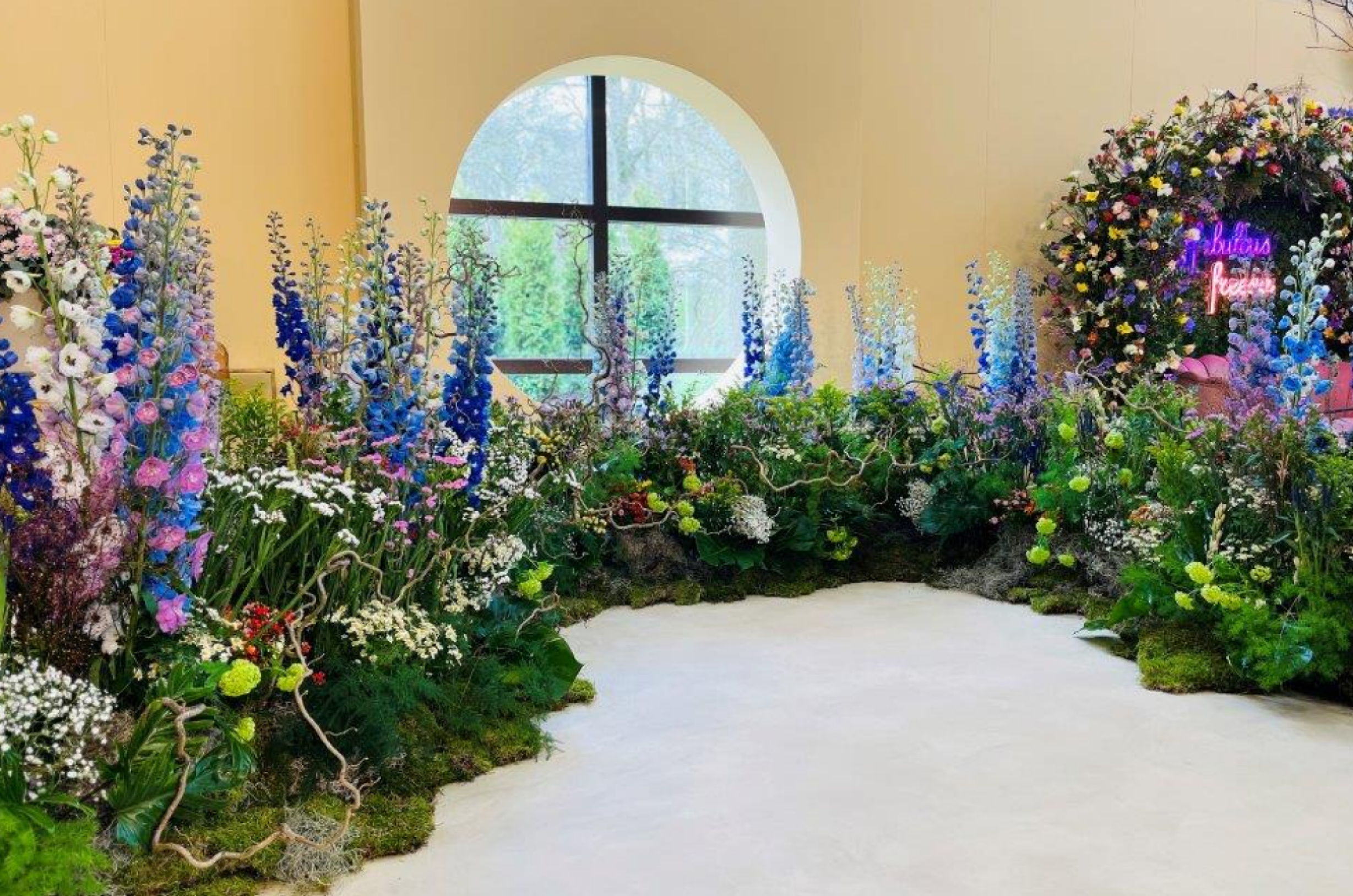 Het arrangement deze week op de Keukenhof bestaat uit inzendingen van 10 deelnemers en tientallen verschillende productgroepen